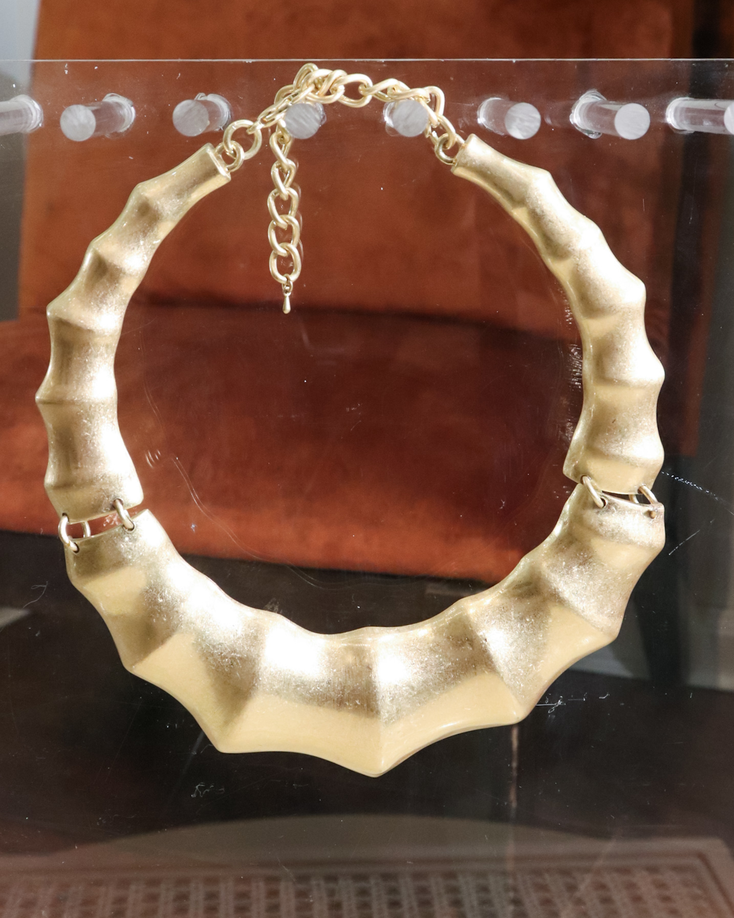 Colar Cleo 22,40 € Desconto de %. Partilhar Comprar Contactar Colar rigido de metal curto. Dourado