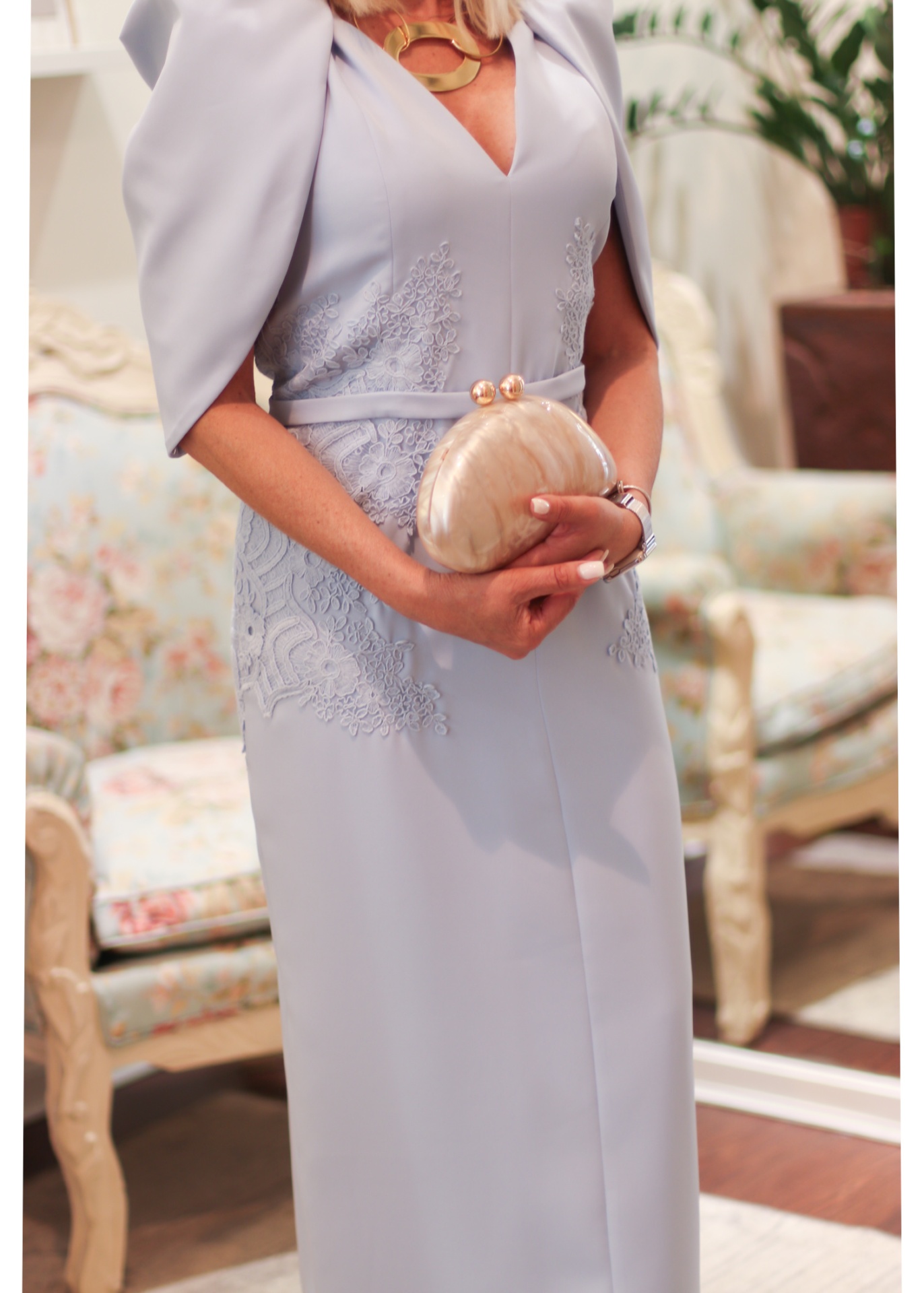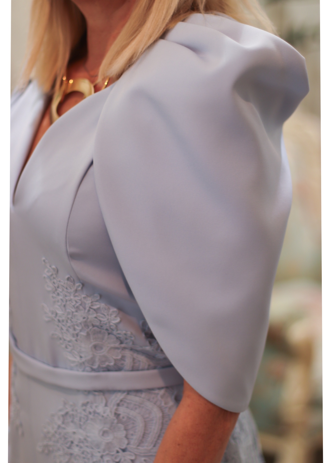 Vestido Tulipe Blue 245,00 € Desconto de %. Partilhar Tamanho M/L L/XL Comprar Contactar Vestido linha a direito, decote aberto, manga tipo capa em formato tulipa. Aplicações em renda nas laterais. Azul claro