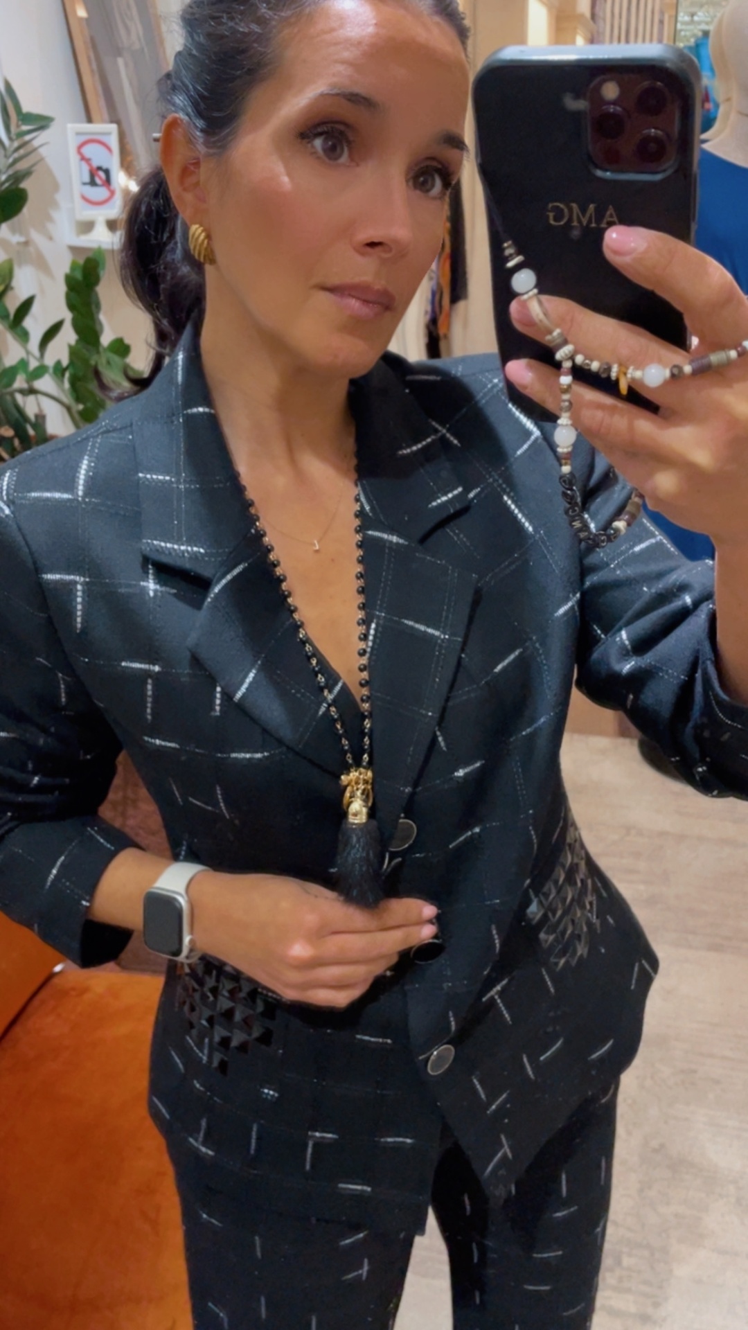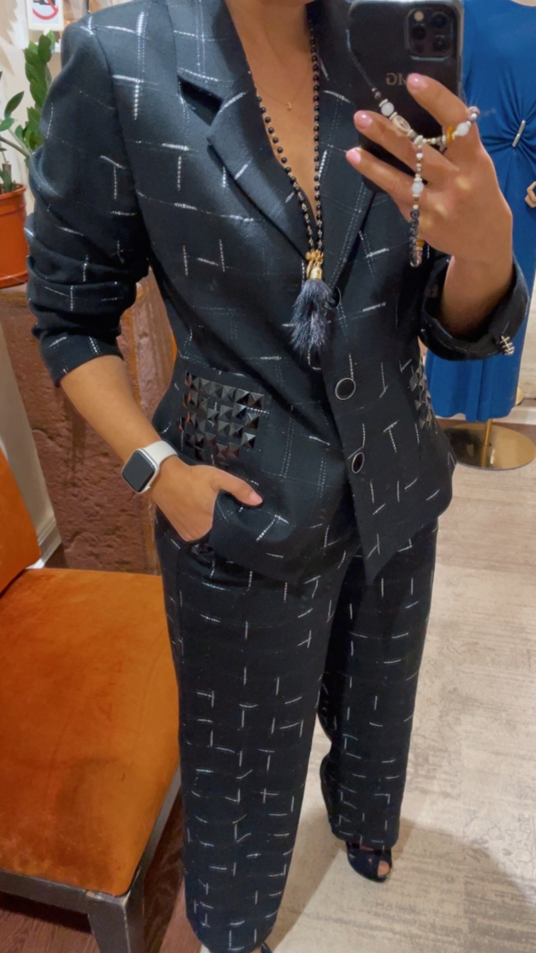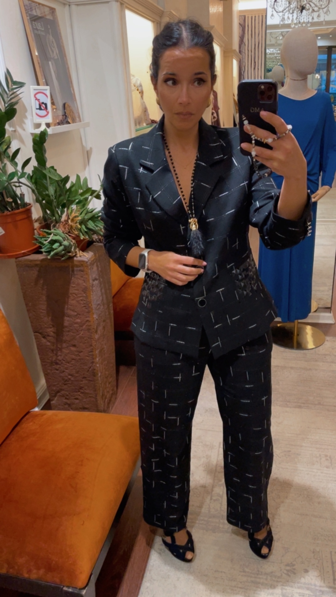 Calça Armonia 69,50 € 139,00 € Desconto de %. Partilhar Tamanho L Comprar Contactar Saldos Casacos 50%. Válido de 11 de Fevereiro de 2026 às 00:00 até 28 de Fevereiro de 2026 às 00:00. Este blazer tem um padrão em e com detalhes de tachas metálicas quadradas aplicadas nos bolços frontais, o que o torna irreverente e moderno. As calças de alfaitaria clássicas são a combinaçao perfeita, com um toque moderno e arrojado.