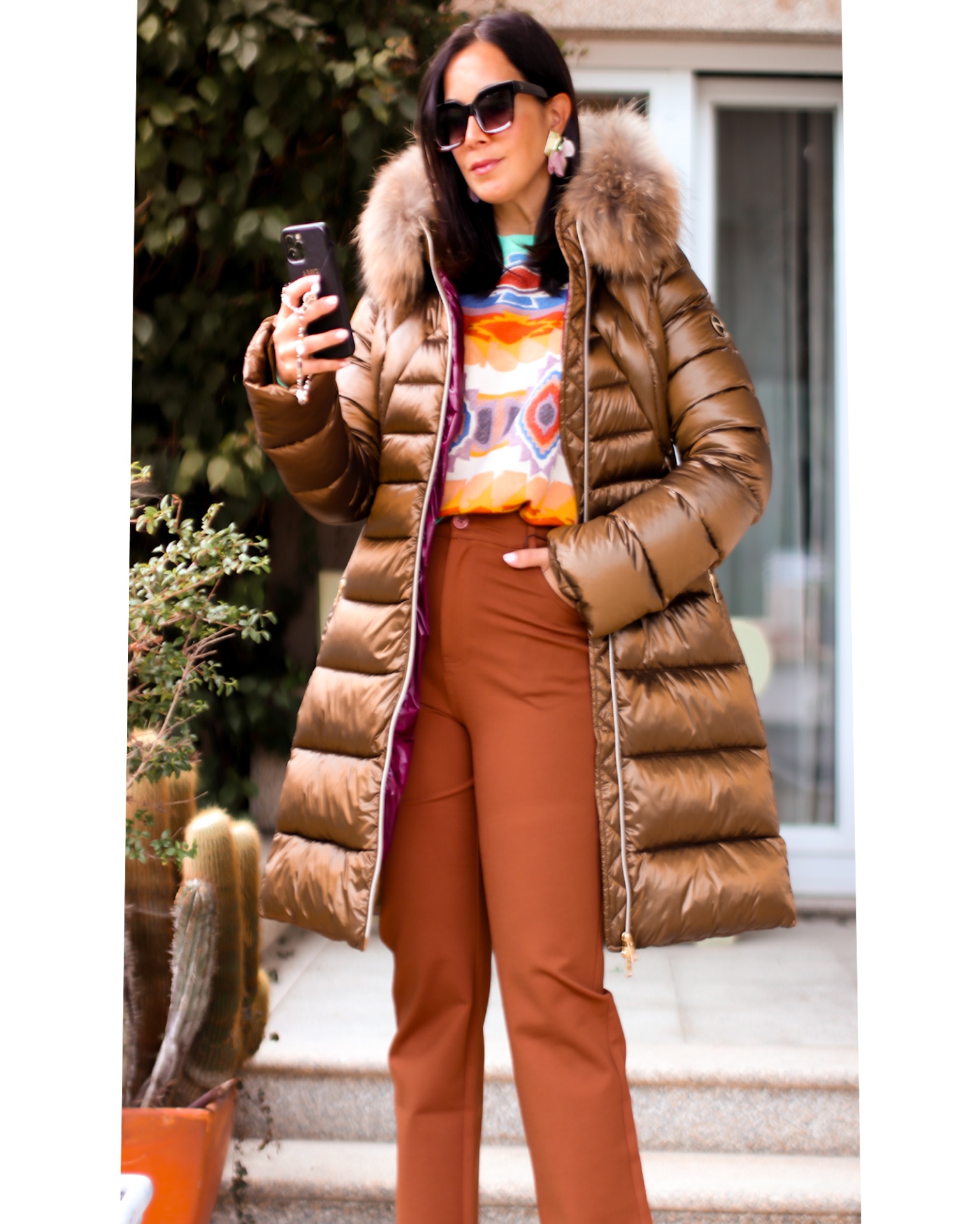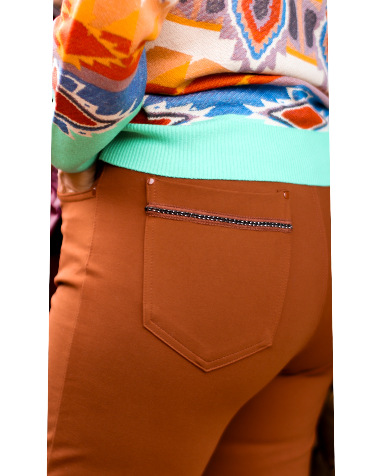 Calças Infanes 55,40 € Desconto de %. Partilhar Comprar Contactar Calças de cintura alta, com bolsos traseiros com um detalhe. Cor: CastanhoTamanhos - 40/ 44/48