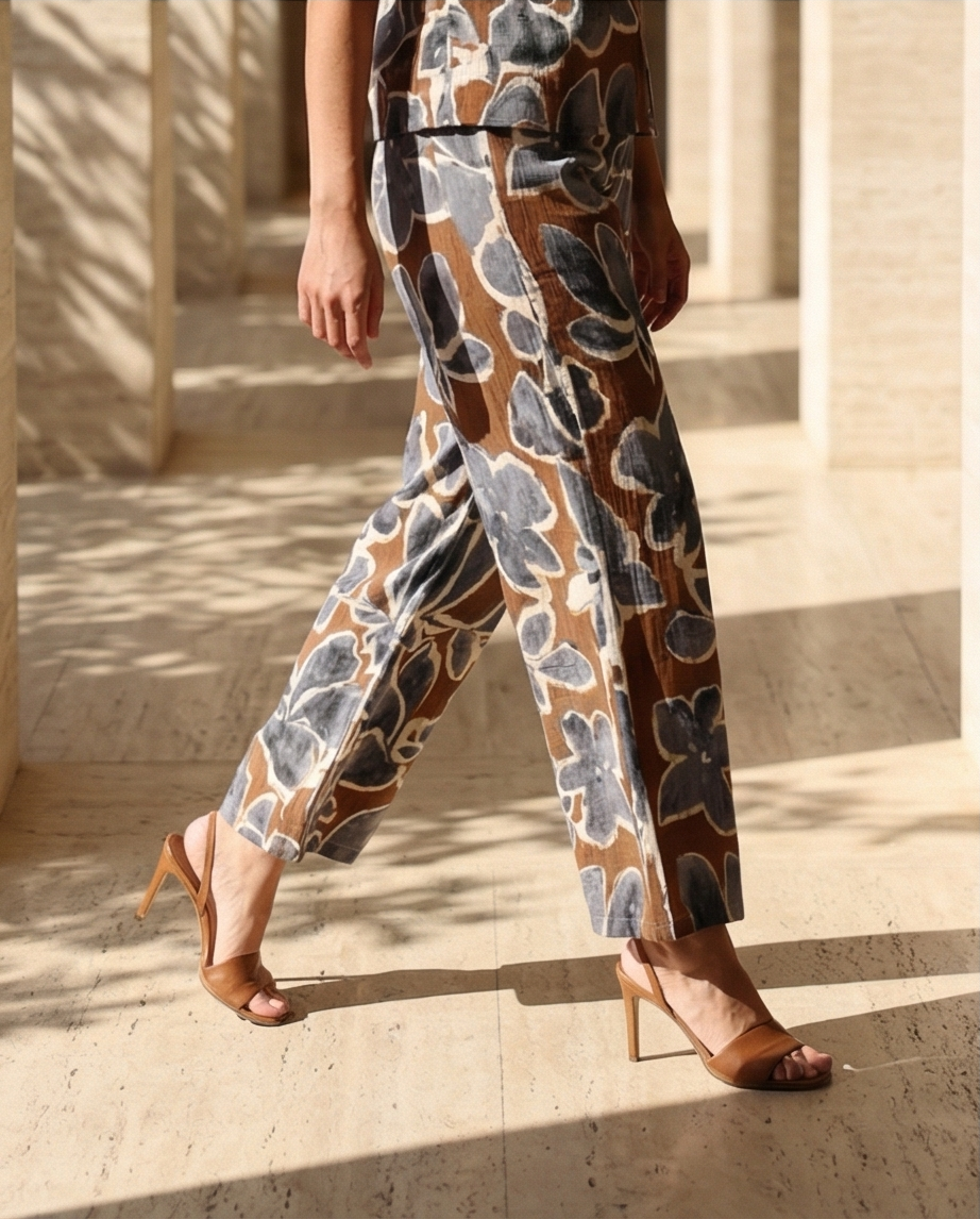 Calças Sweed 119,40 € Desconto de %. Partilhar Tamanho L/XL Comprar Contactar Estas calças tem um padrão floral em ocre, cinza e branco, as cores na parte de trás são invertidas, é de corte de perna larga. Fazem um exelente conjunto com a túnica SWEED com o camiseiro REBECA. Pequenos detalhes, grande impacto, porque cada mulher merece brilhar em qualquer ocasião.