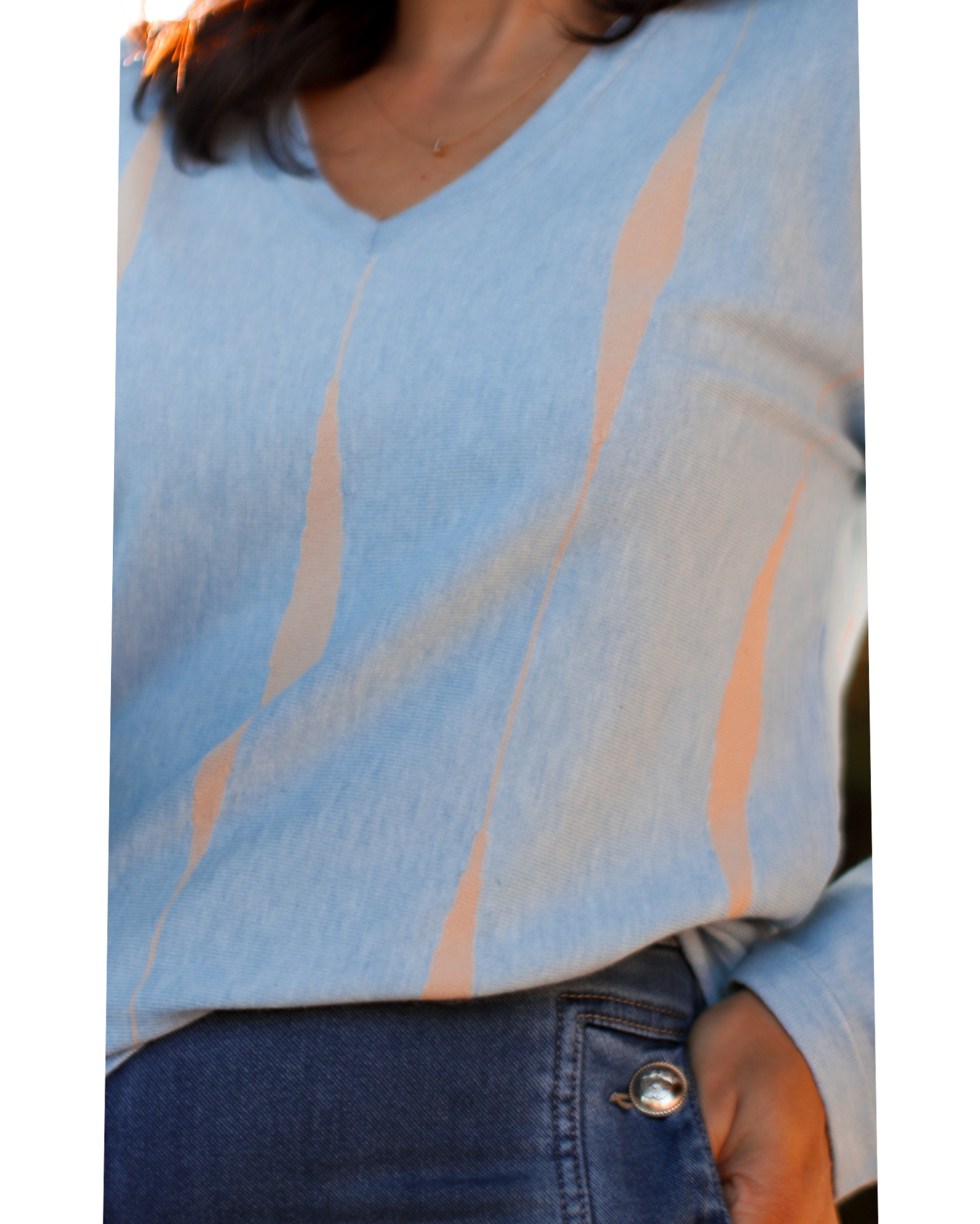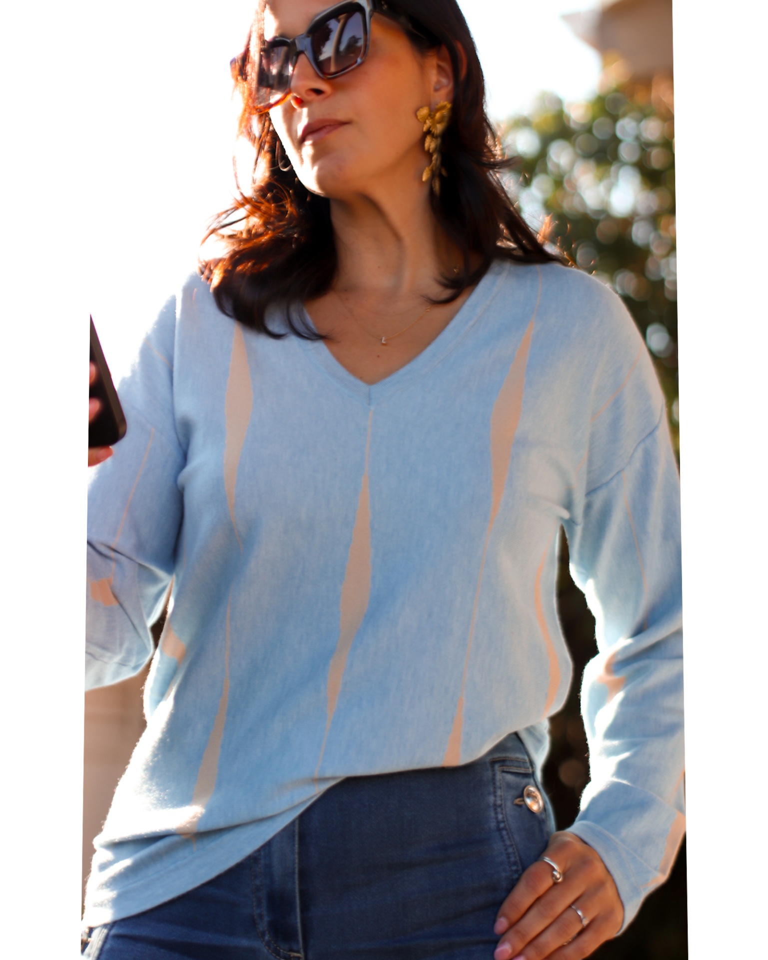 Camisola Ocean 39,70 € 79,40 € Desconto de %. Partilhar Tamanho S/M/L Comprar Contactar Saldos. Válido de 28 de Dezembro de 2025 às 00:00 até 31 de Janeiro de 2026 às 00:00. Esta é uma camisola de malha com decote em V em azul claro com um padrão abstrato em beje.