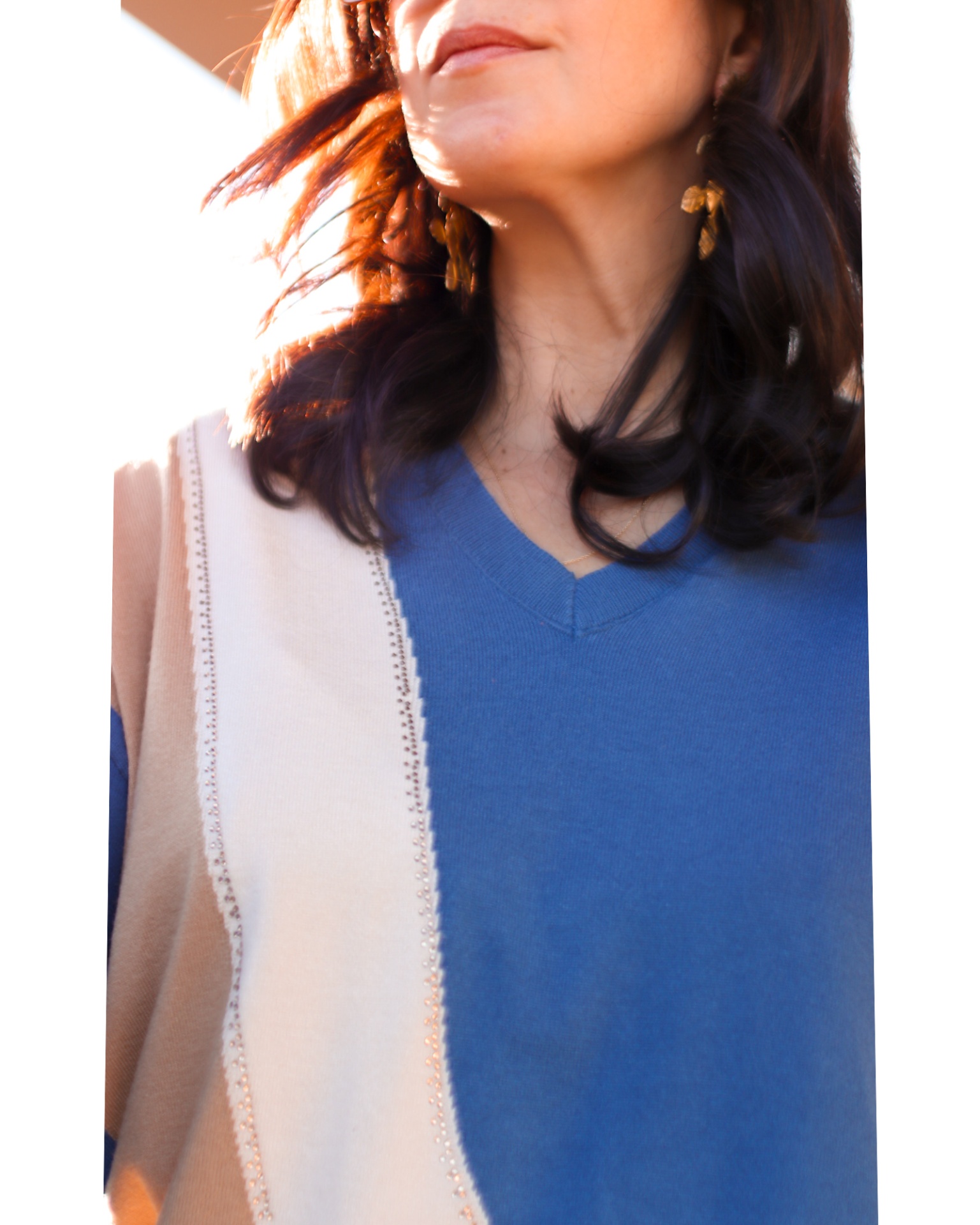 Camisola Vicky 31,76 € 79,40 € Desconto de %. Partilhar O produto encontra-se sem stock. Camisolas 60%. Válido de 11 de Fevereiro de 2026 às 00:00 até 28 de Fevereiro de 2026 às 00:00. Esta camisola de malha tem o decote em V com um padrão diagonal em blocos. Cor: Azul, beje e castanho claro com um destaque de brilho.