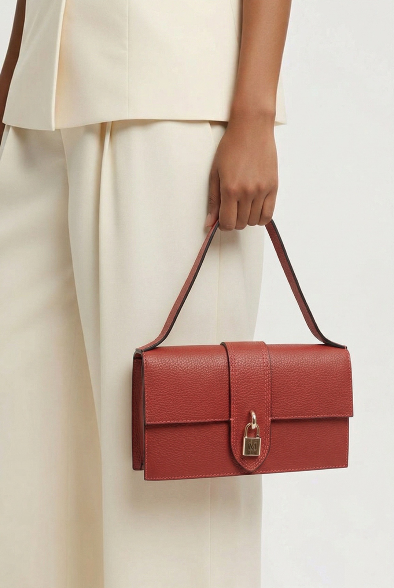 Carteira Lola 89,40 € Desconto de %. Partilhar Comprar Contactar Esta mala de mão é em couro texturada tem uma aba frontal e fecho com um cadeado dourado, com distintivo da letra (M). Uma peça elegante. Cor : Marrom Cognac