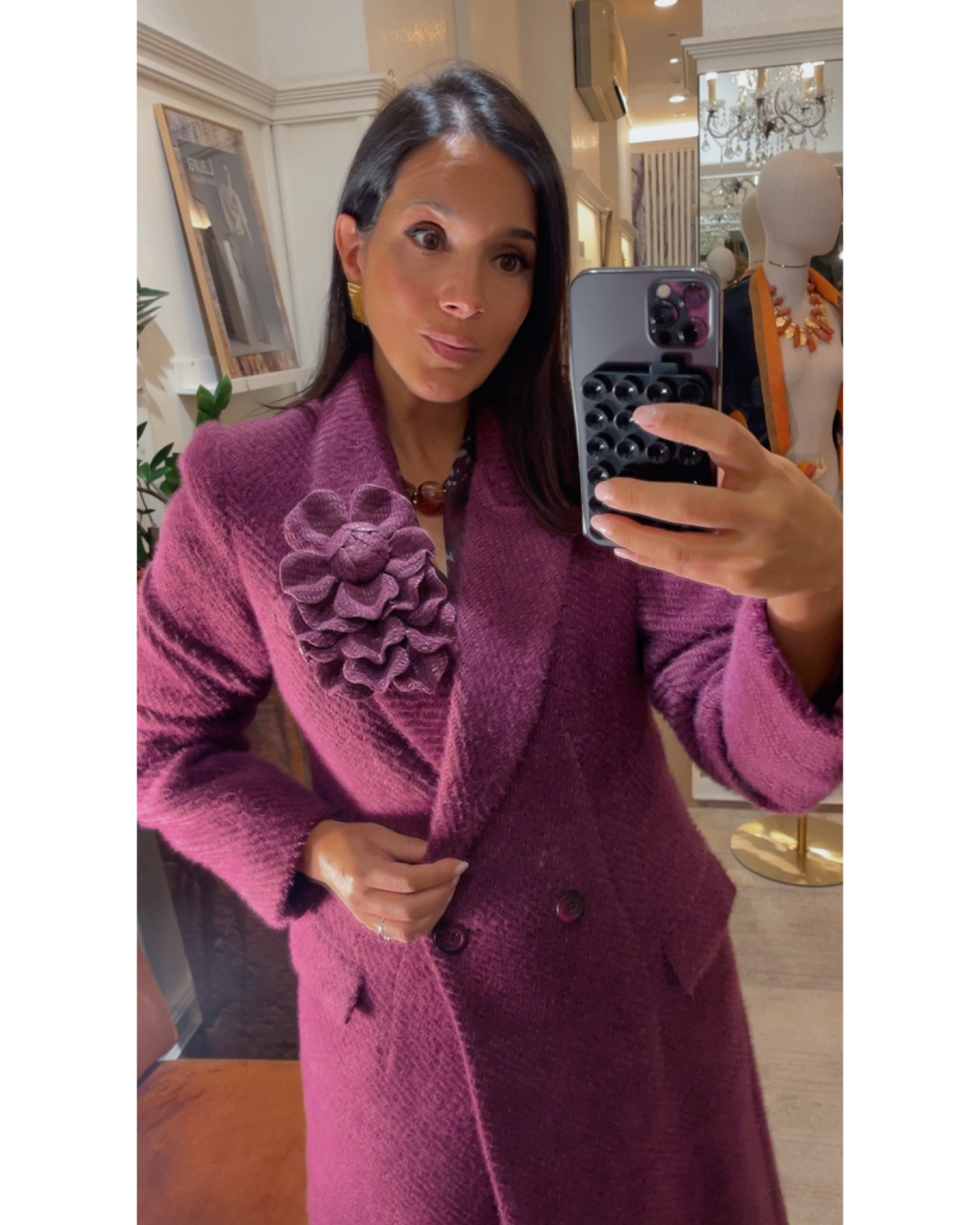 Casaco Isis 235,40 € Desconto de %. Partilhar Comprar Contactar Casaco comprido de fazenda muito bonito, maçio e felpudo, criando um padrão canelado. Na lapela tem uma notavel flor decorativa do mesmo tecido. Cor :Bordô Tamanho - 40 / 44