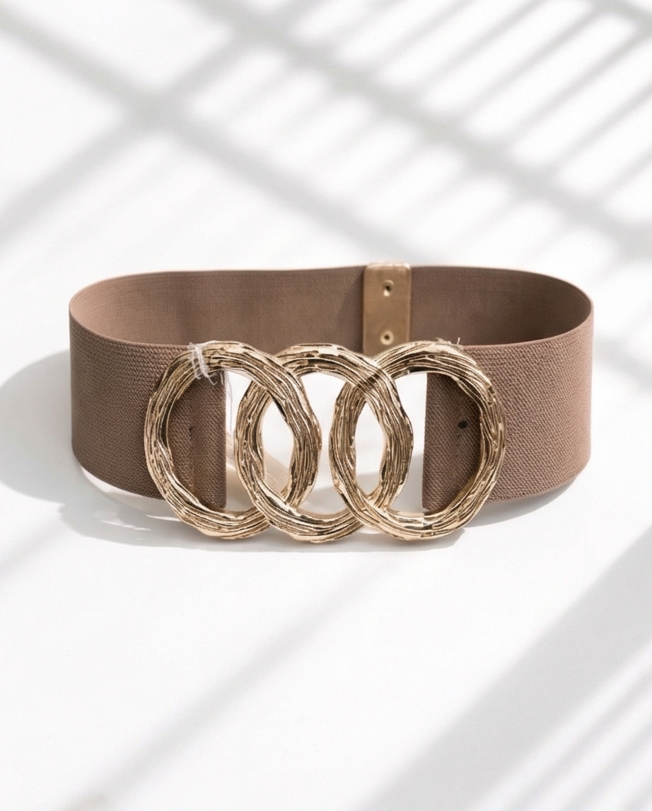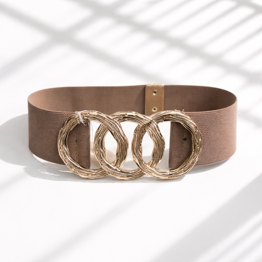 Cinto Arial 12,40 € Desconto de %. Partilhar Comprar Contactar Este tipo de cinto é utilizado para marcar a cintura em vestidos, blusas ou blazers. É composto por uma faixa elástica proporcionando um ajuste confortável, tem três círculos dourados entrelaçados.