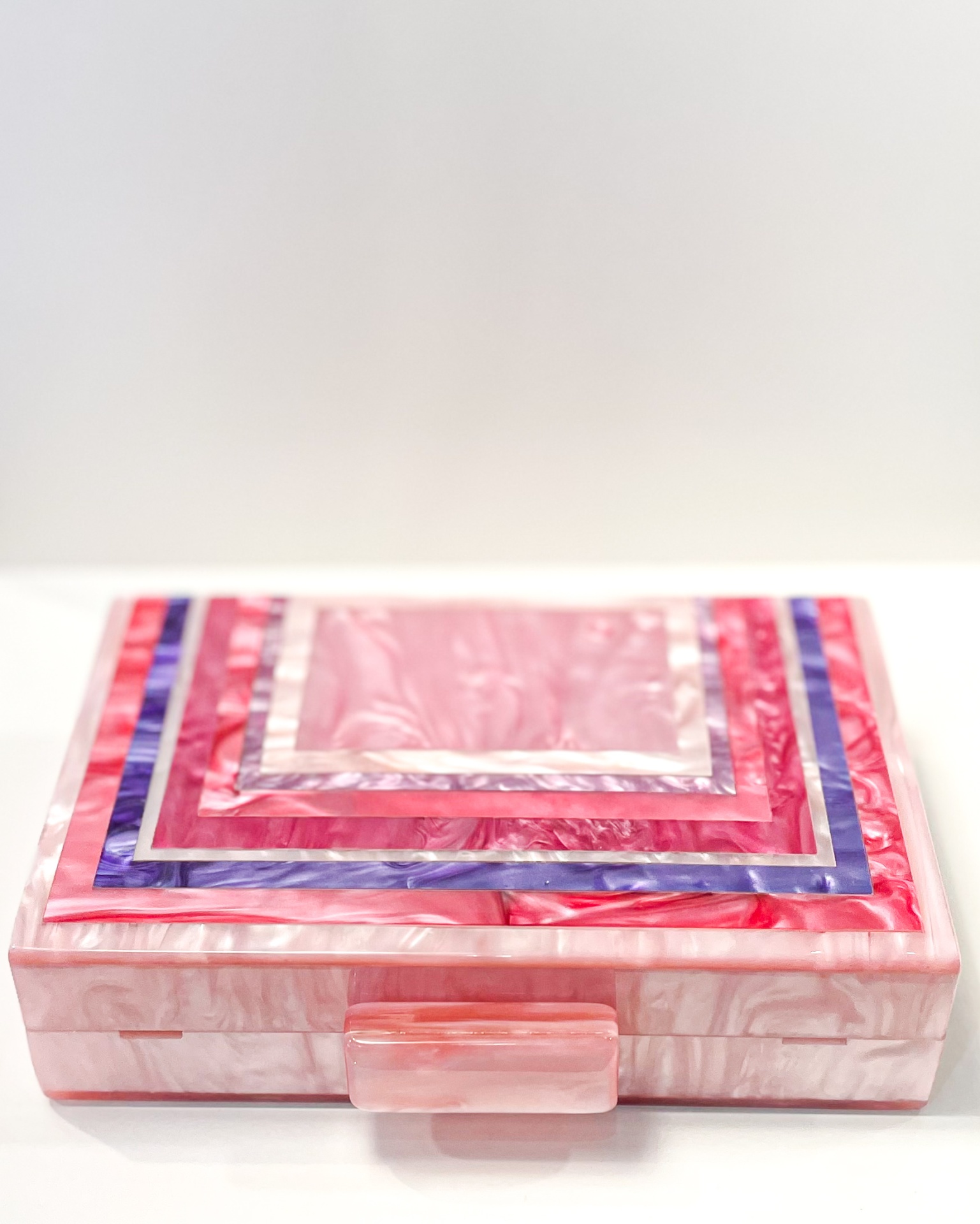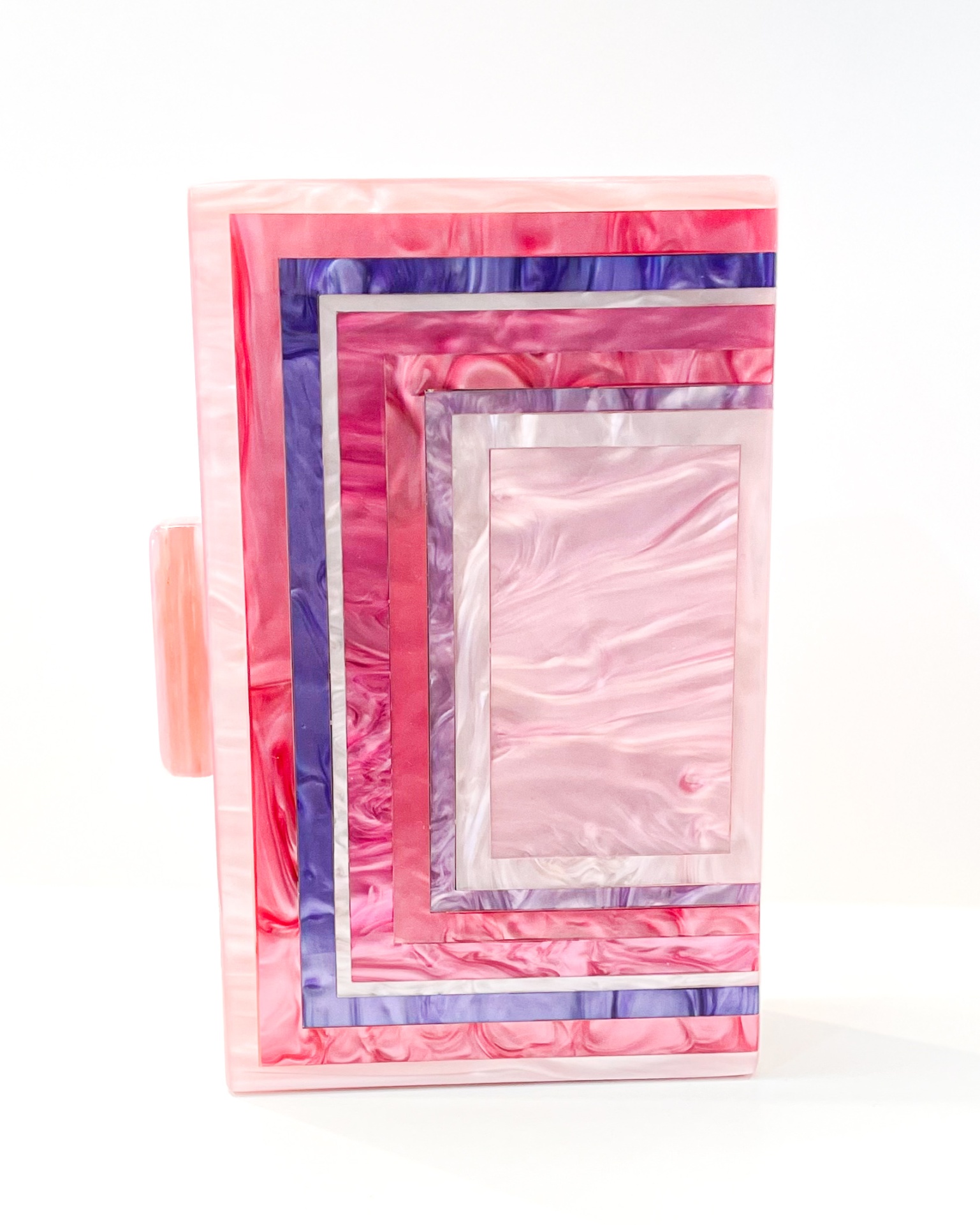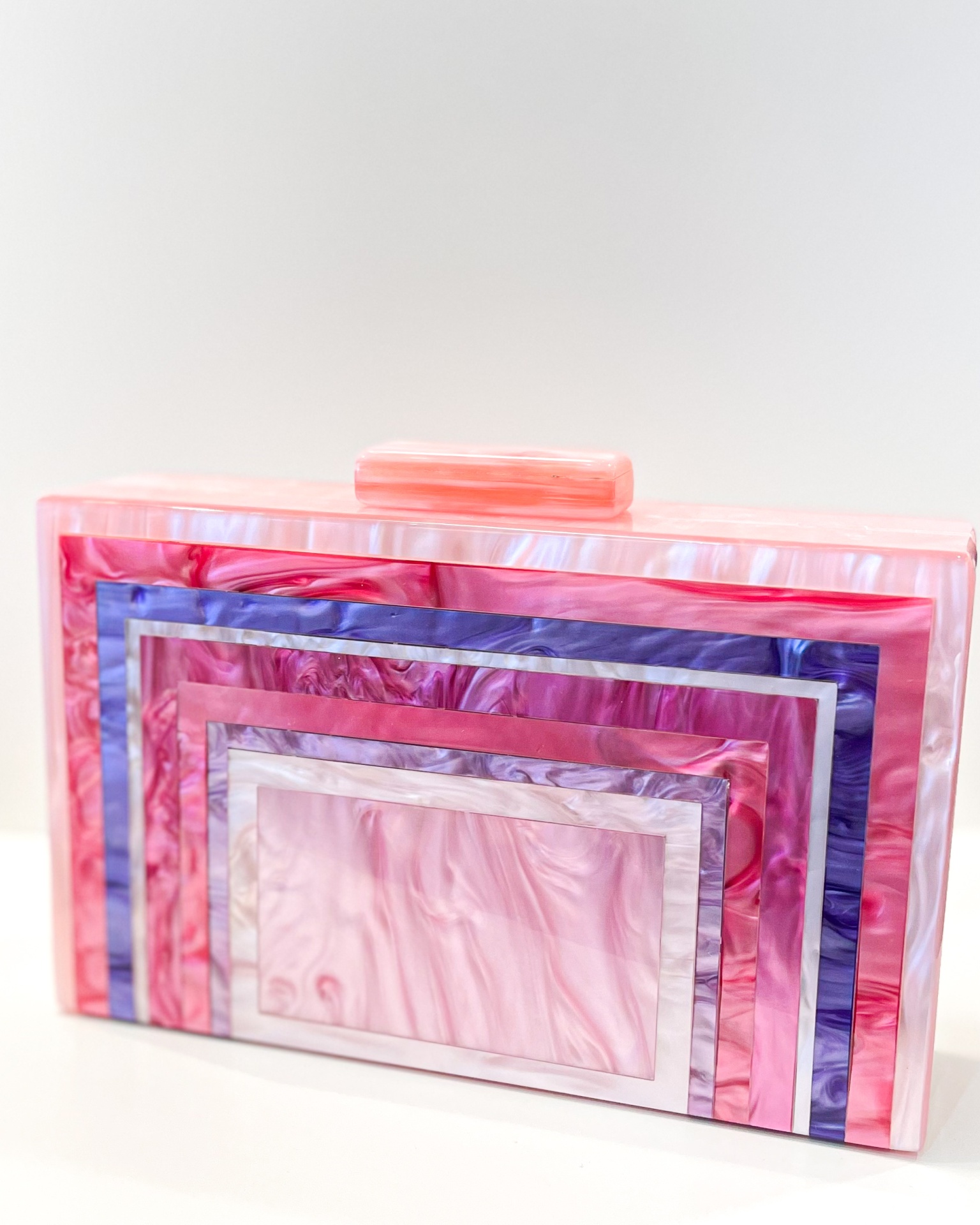 Clutch Arch acrylic 49,40 € Desconto de %. Partilhar Comprar Contactar Carteira de mão de cerimonia em acrilico com encaixes coloridos. Inclui corrente de ombro. Cor:rosa e lilas