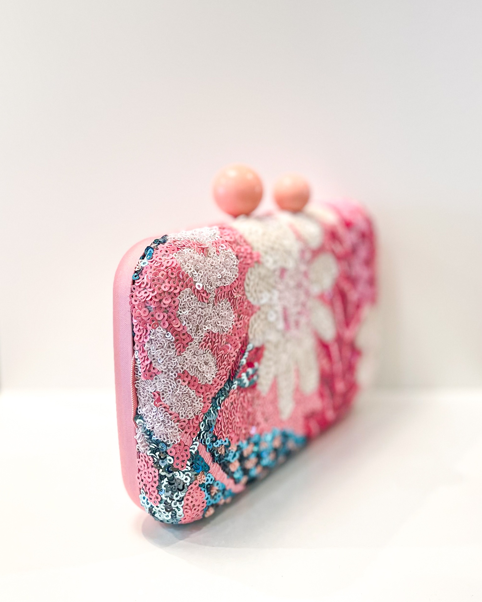 Clutch Brodé Pink 39,40 € Desconto de %. Partilhar Comprar Contactar Carteira de mão de cerimonia bordada em lentejolas com motivos florais. Cor: Tons de rosa