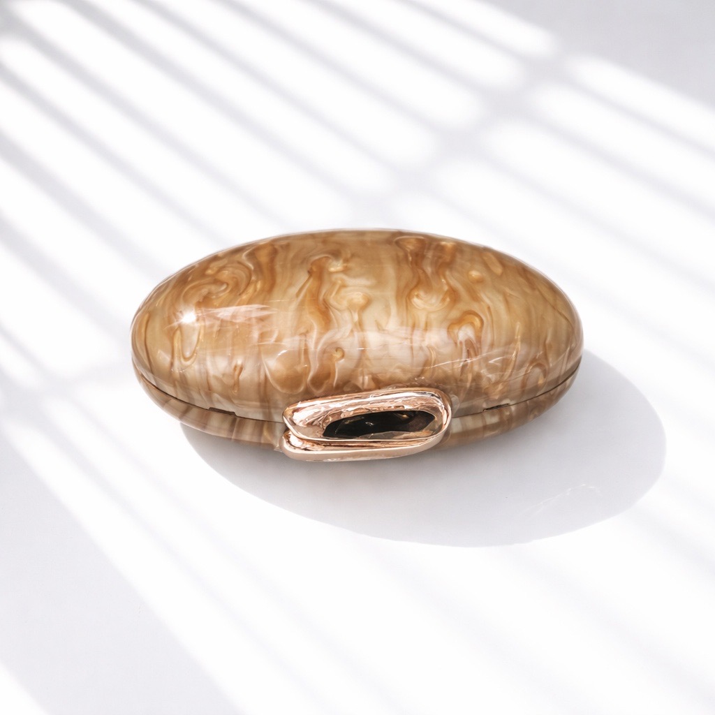 Clutch Dora 49,40 € Desconto de %. Partilhar Comprar Contactar É uma clutch com um desing assimétrico em forma de ovo, em acrílico tem um acabamento marmoreado em tons de beje. Tem o fecho metálico em dourado e uma corrente removível. Ideal para eventos formais, como casamentos e festas.