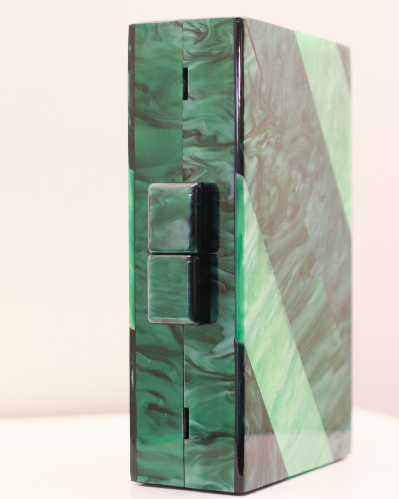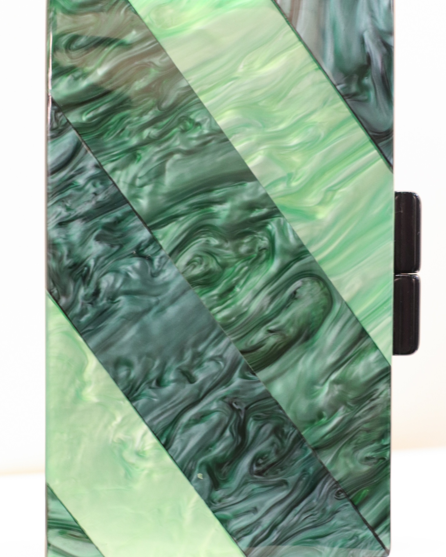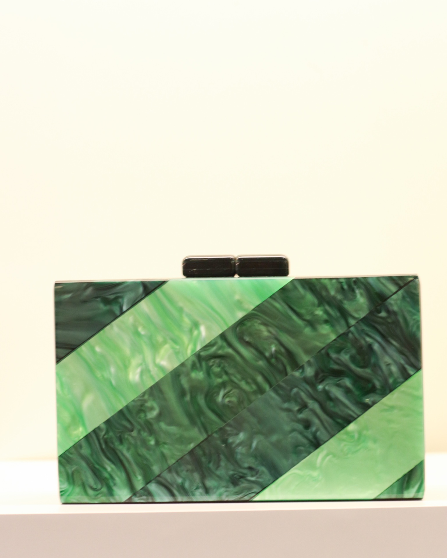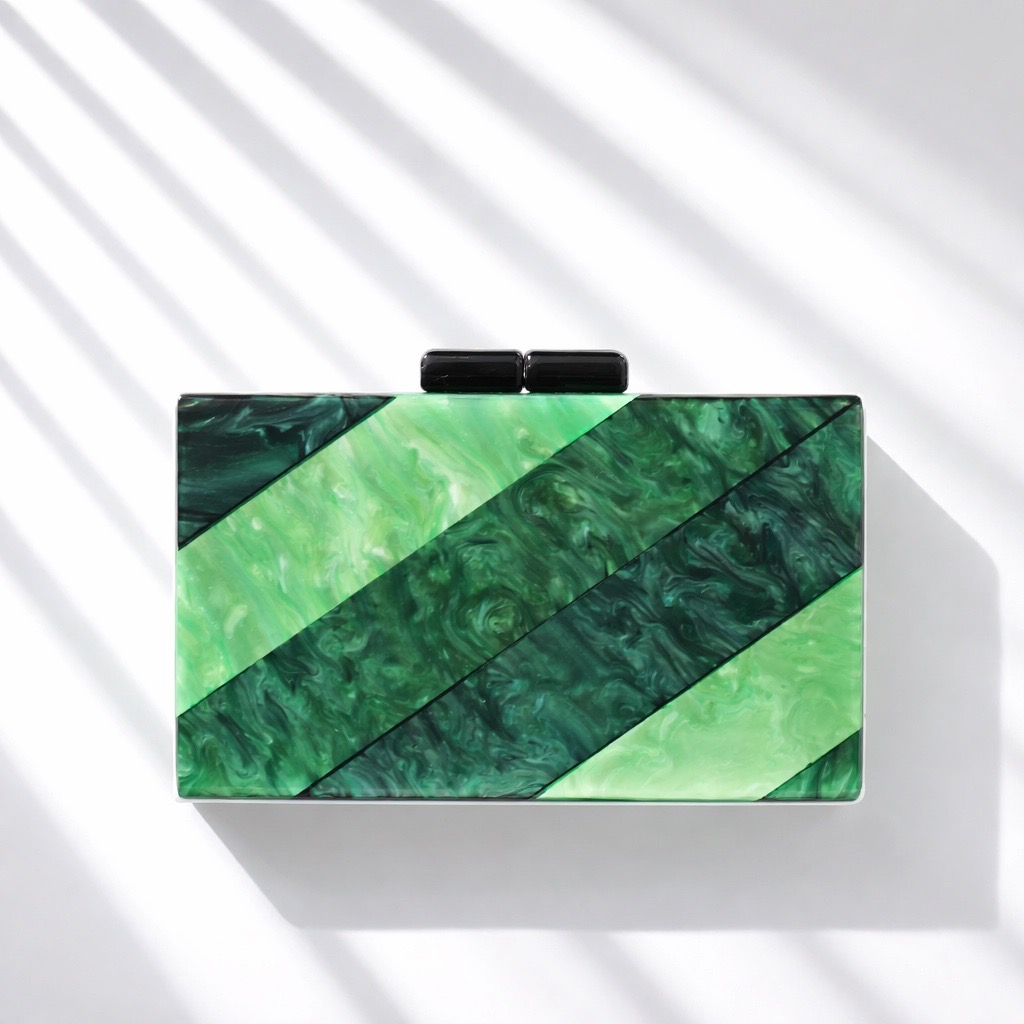 Clutch Noa 39,40 € Desconto de %. Partilhar Comprar Contactar Clutch com um padrão em tons de verde disposto em faixas diagonais, em acrílico com corrente removível. É um acessório para ocasiões formais como casamentos, festas de gala e coquetéis.