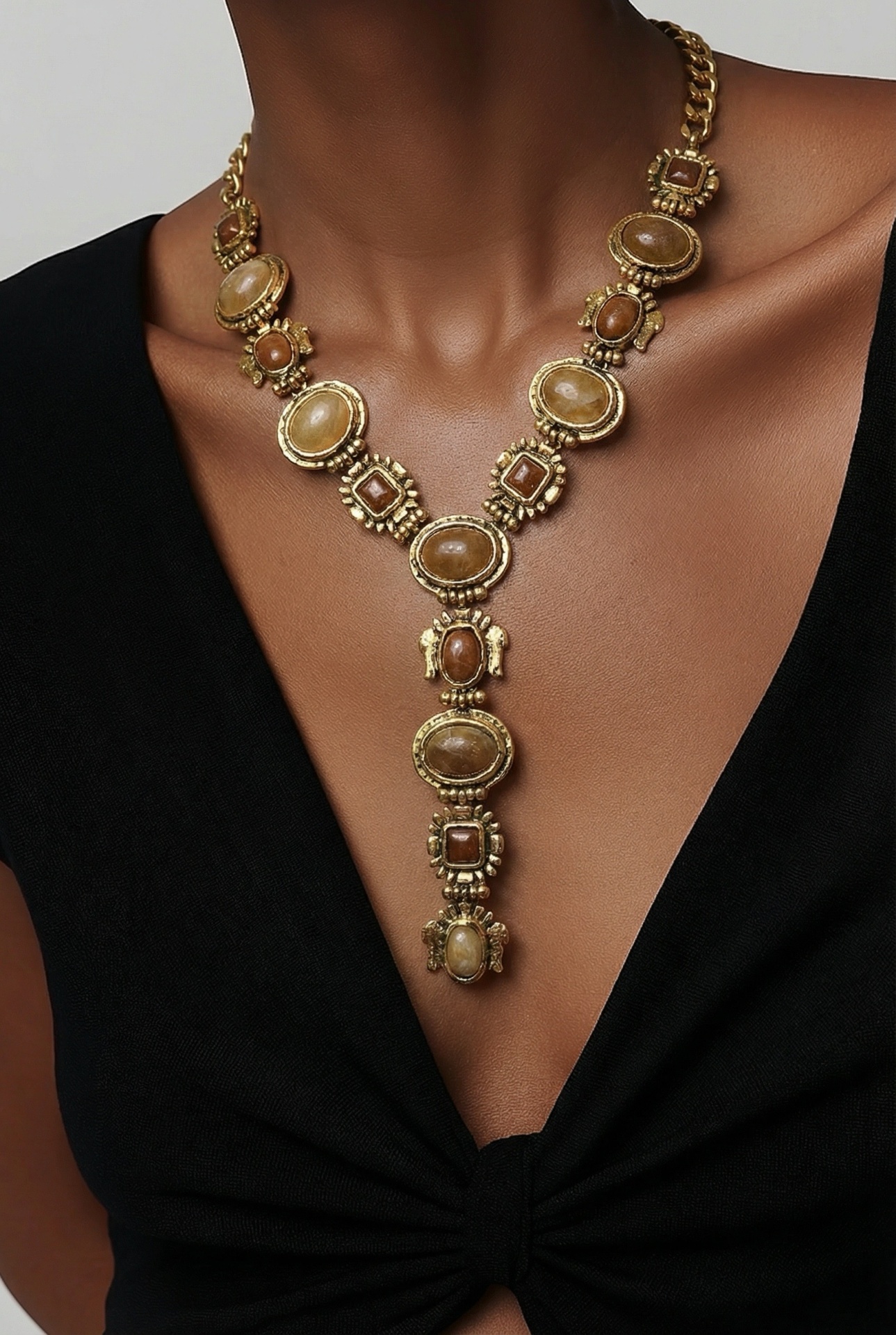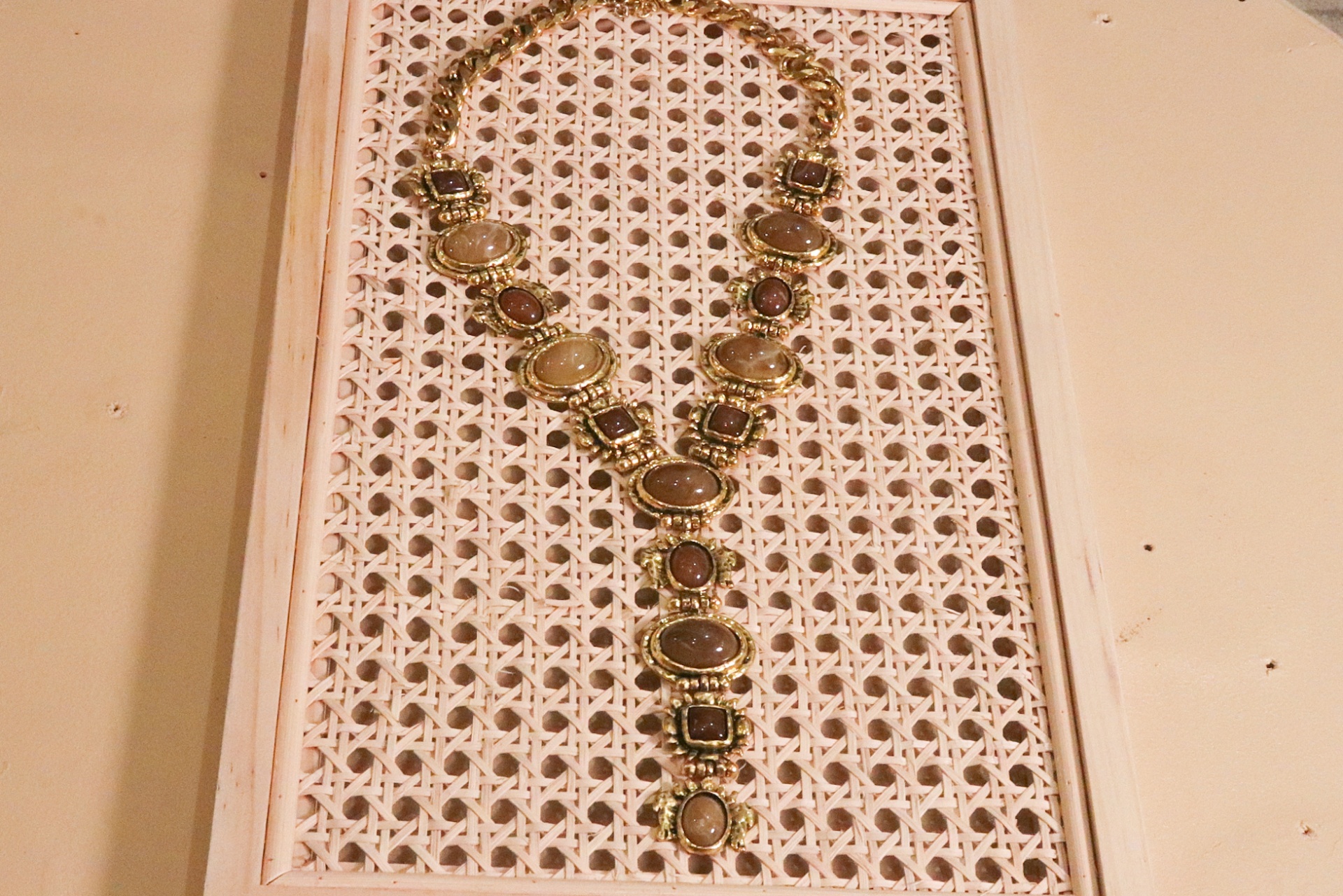 Colar Inca 29,40 € Desconto de %. Partilhar Comprar Contactar Colar comprido de metal dourado com pedras beges. Estilo da epoca Maia/Inca.