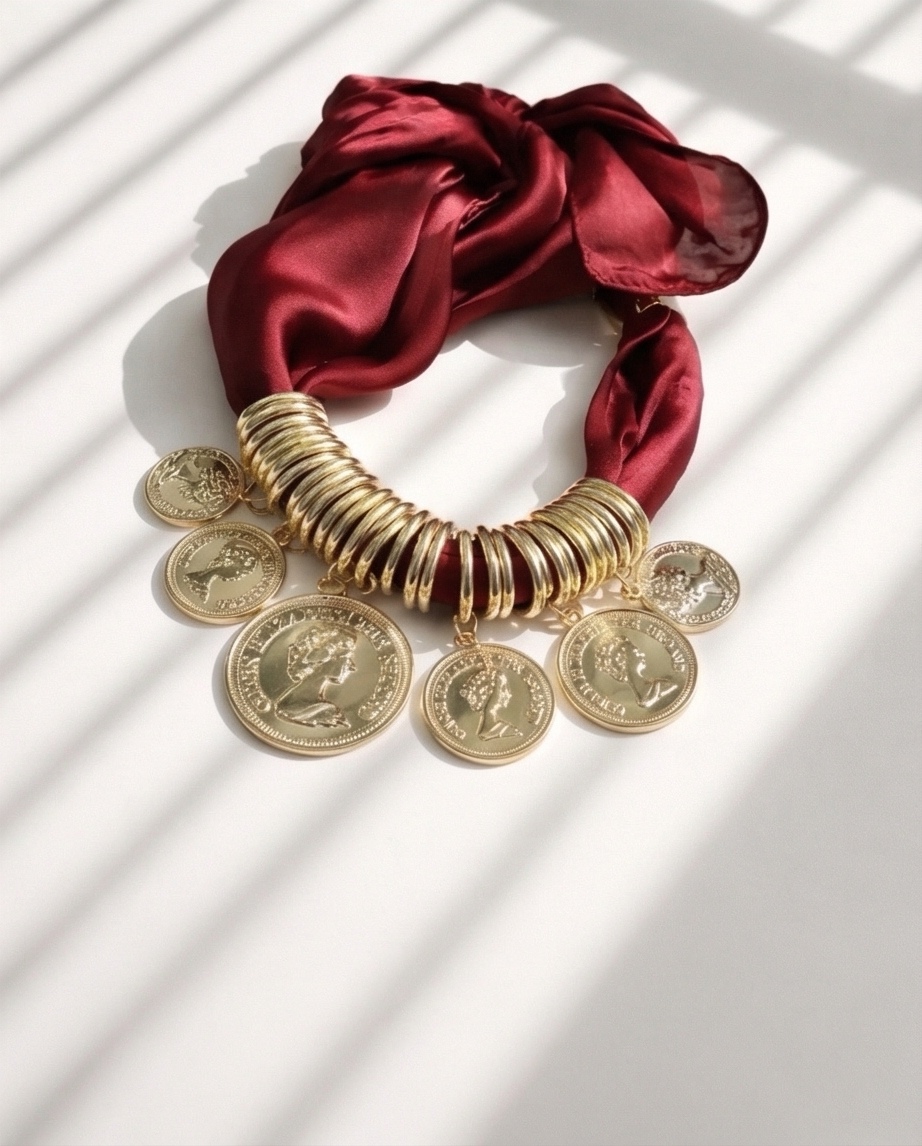 Colar Libra Bordeaux 22,40 € Desconto de %. Partilhar Comprar Contactar Colar em forma de lenço com argolas e libras douradas. Muito versátel pode combinar no seu look.