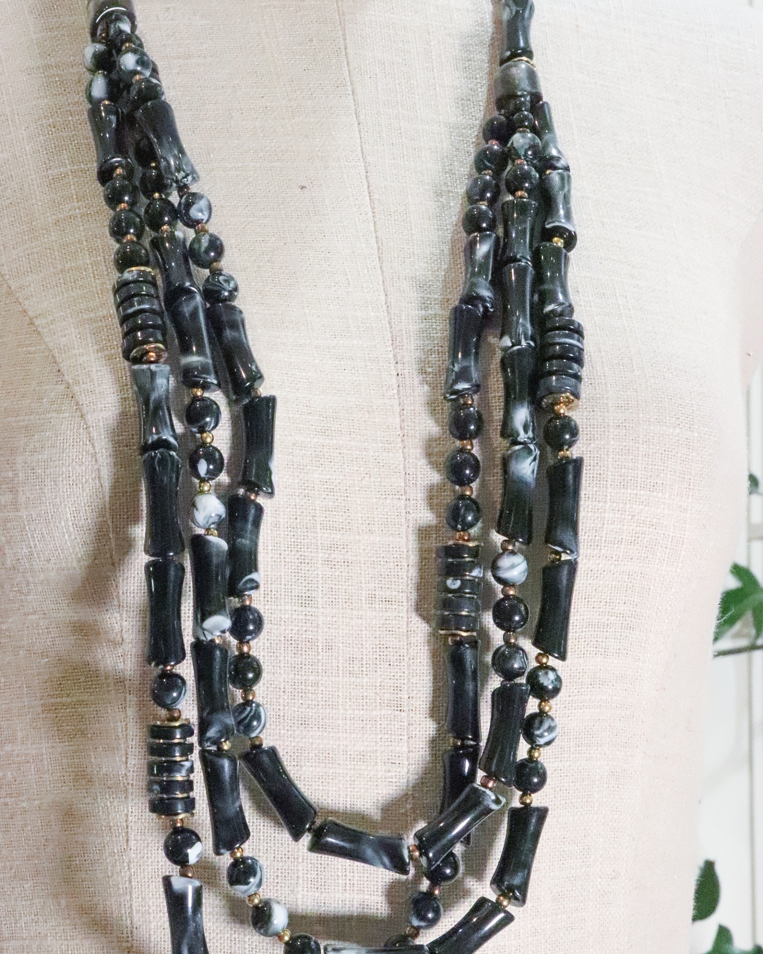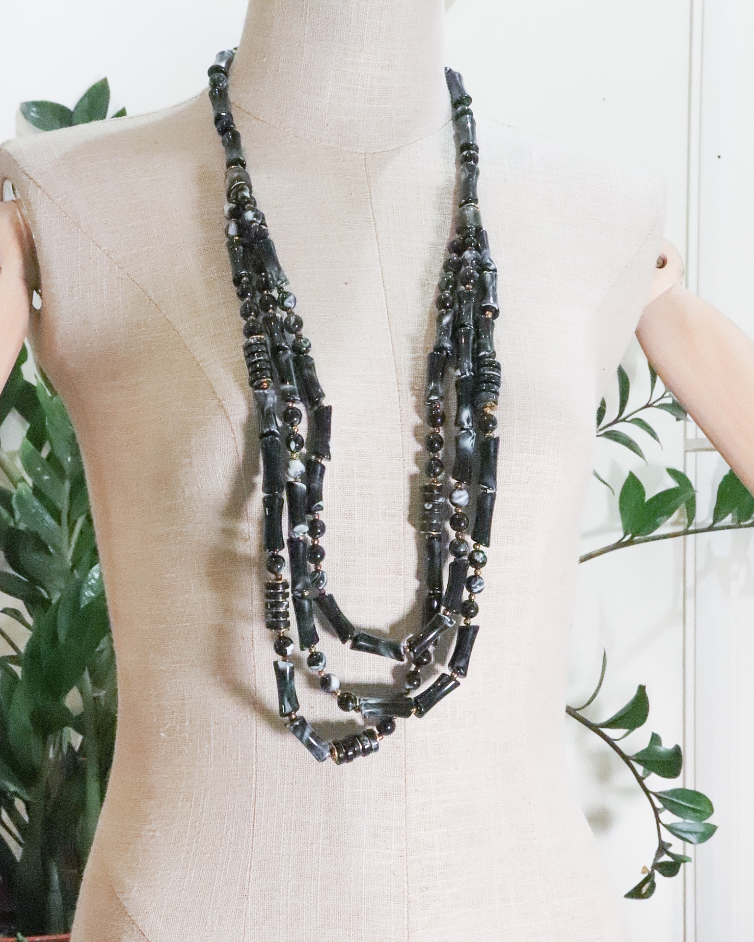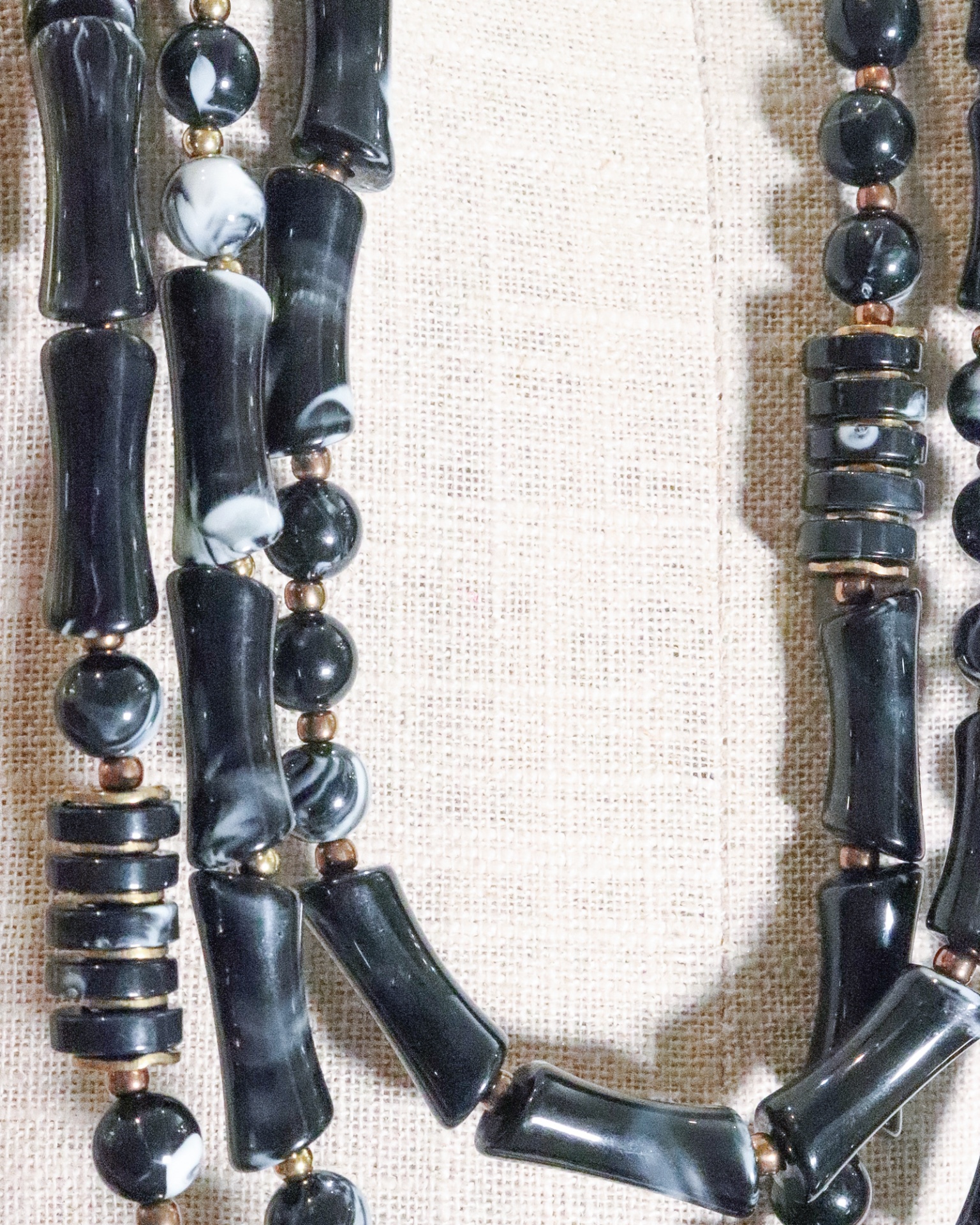 Colar Mate 19,40 € Desconto de %. Partilhar Comprar Contactar Este colar tem várias camadas, com contas de forma cilíndricas e esféricas. Em tons de cinzento e preto, intercaladas com contas mais pequenas em dourado.