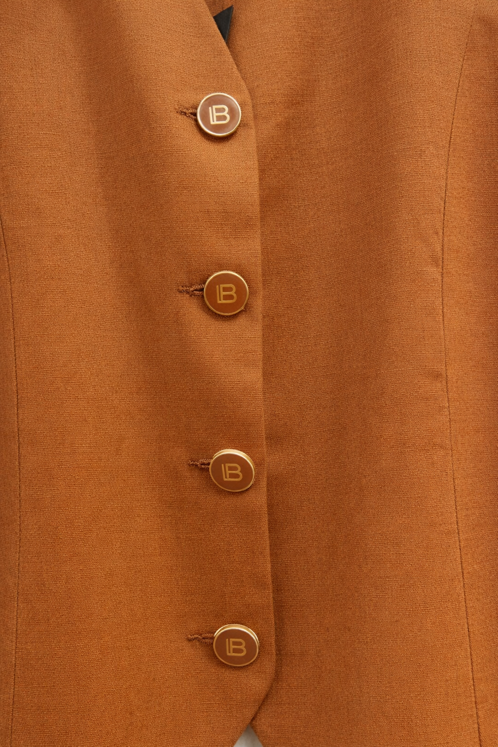 • Blazer castanho com botões decorativos castanhos e dourados com letras LB