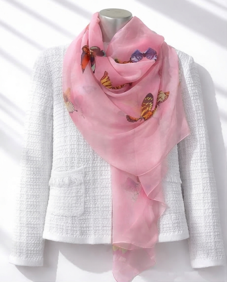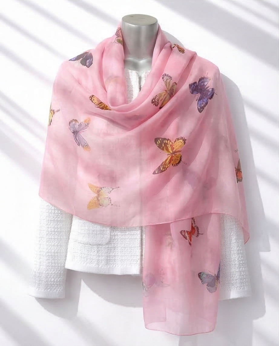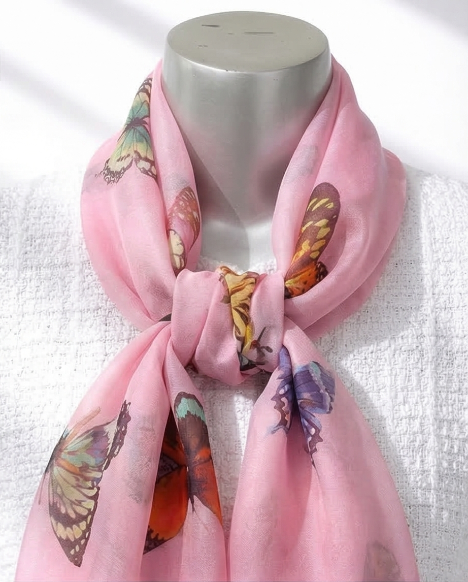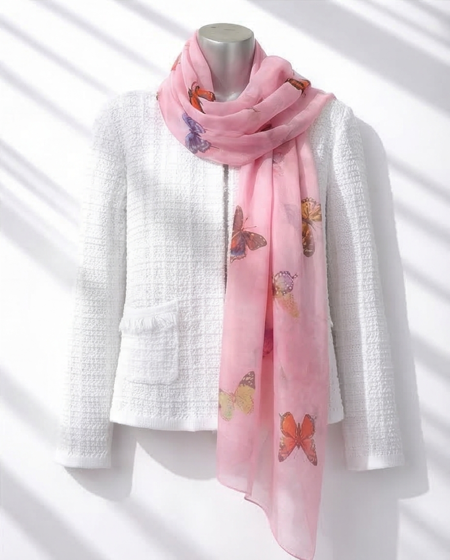 Echarpe Borboleta 32,40 € Desconto de %. Partilhar Comprar Contactar Esta echarpe é leve, fluida e semitranparente em tons de rosa pastel com um padrão de borboletas coloridas. Ideal para complementar o seu look.