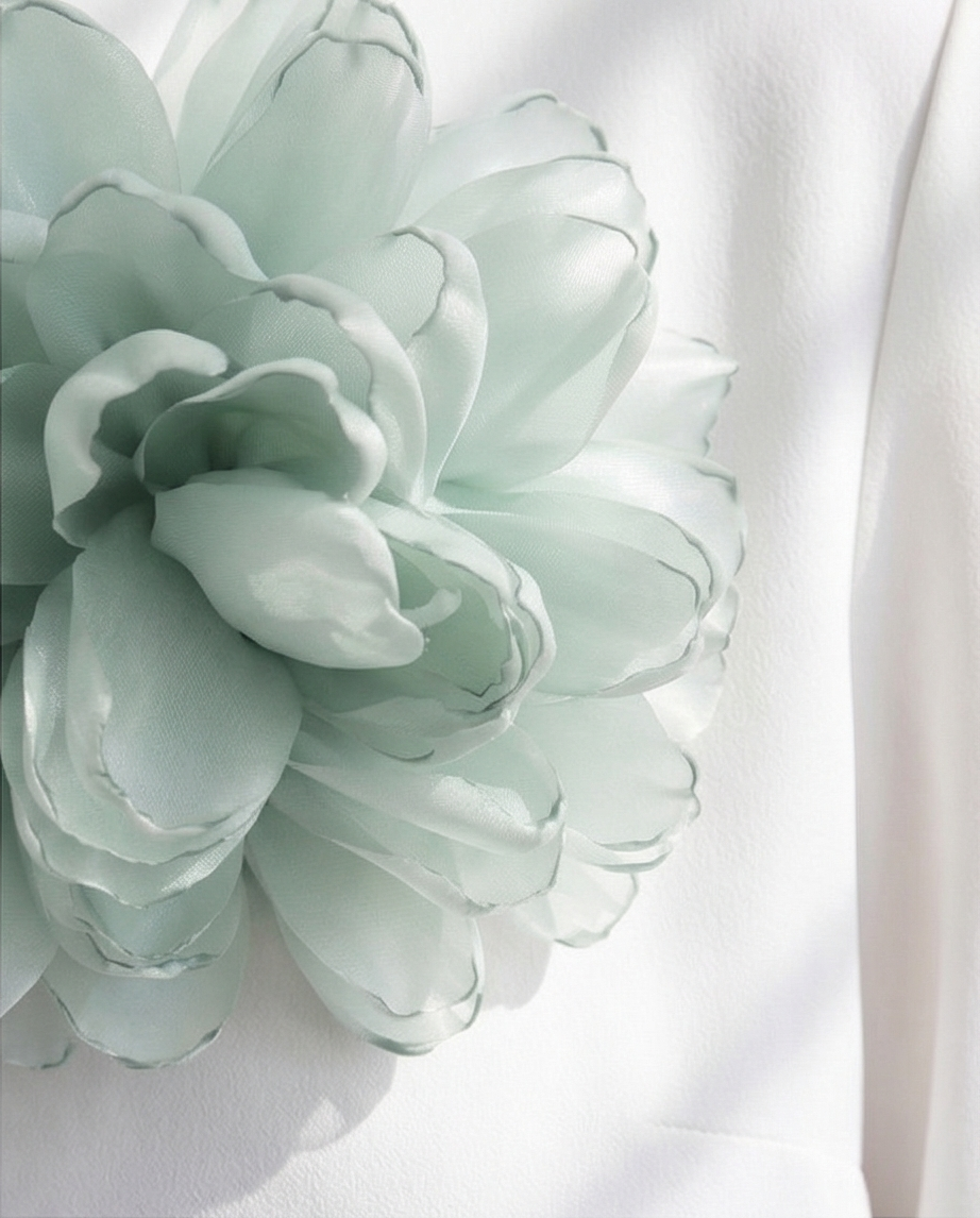 • Broche flor verde água em blazer branco