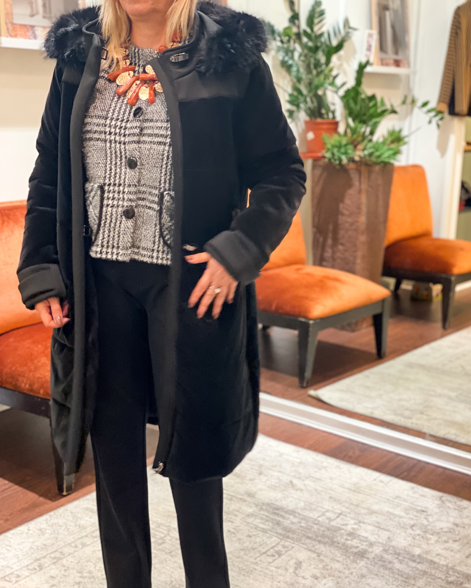 Gabardine Mabel 209,40 € Desconto de %. Partilhar Comprar Contactar Esta gabardine é aveludada, com uma textura macia e com um aspeto elegante. Tem carapuço com pelo, ideal para os dias frios. Cor: Preto Tamanho: 44