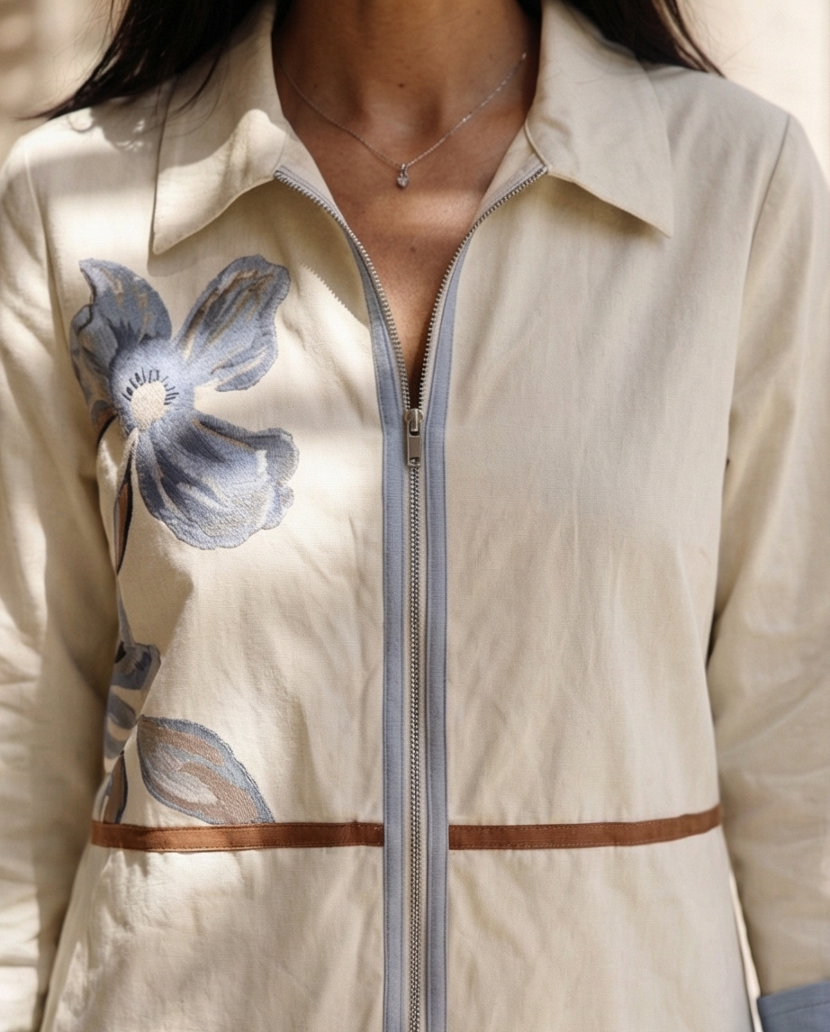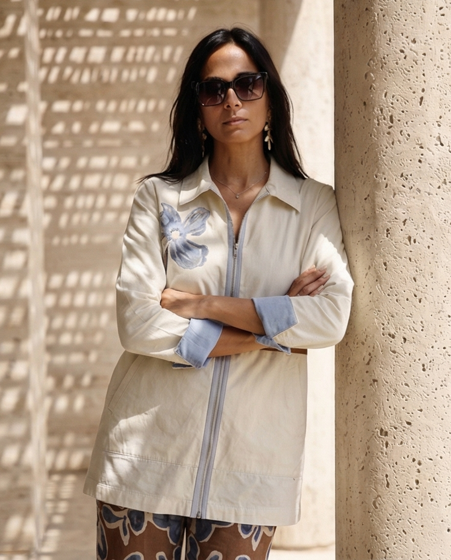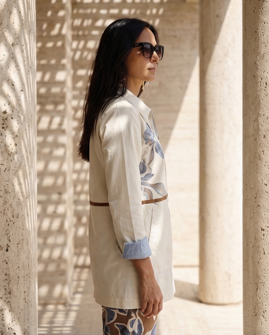 Parkar Fantasy 234,40 € Desconto de %. Partilhar Tamanho L Comprar Contactar Esta glarmorosa Parkar tem uma gola clássica e capuz em tecido contrastante, tal como nos punhos, tem um fecho metálico decorativo. Destaca-se pela serigrafia artísica de uma flor pintada á mão na parte frontal. É uma peça leve confortavel ideal para a meia-estação.