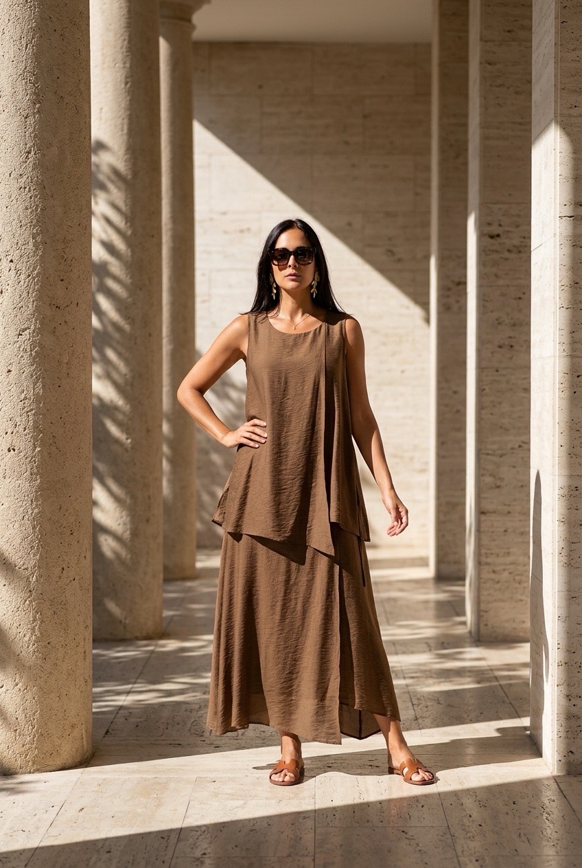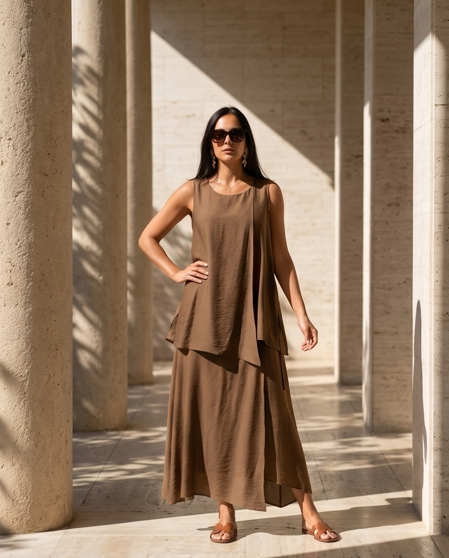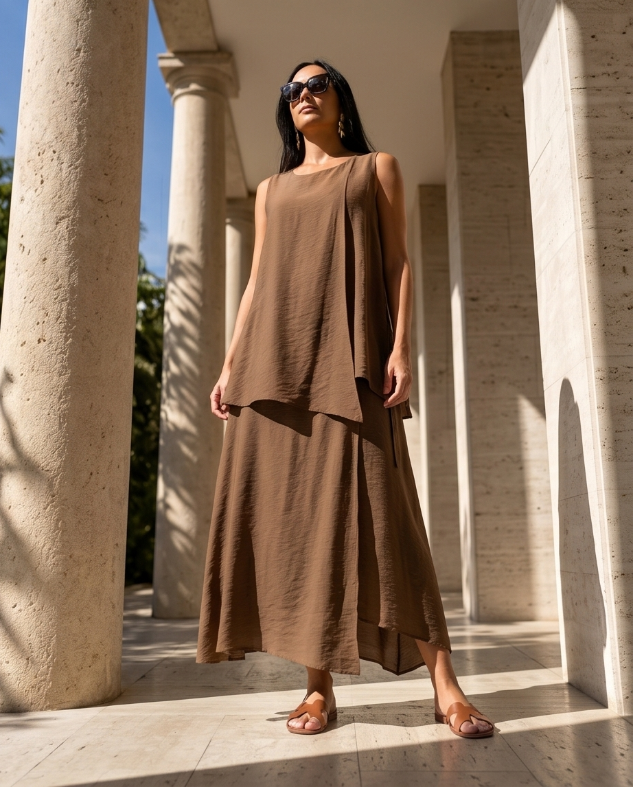 Vestido Aguiar 159,40 € Desconto de %. Partilhar Tamanho Único Comprar Contactar Este vestido midi é sem mangas, com uma sobreposição assimétrica na frente que permite criar diferentes camadas e movimento. Um look confiante e versátel, ideal para marcar presença no trabalho ou em ocasiões especiais. Cor : Castanho