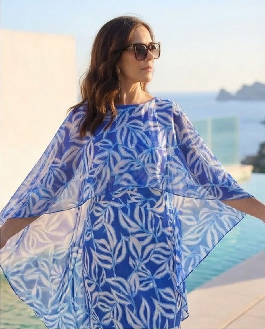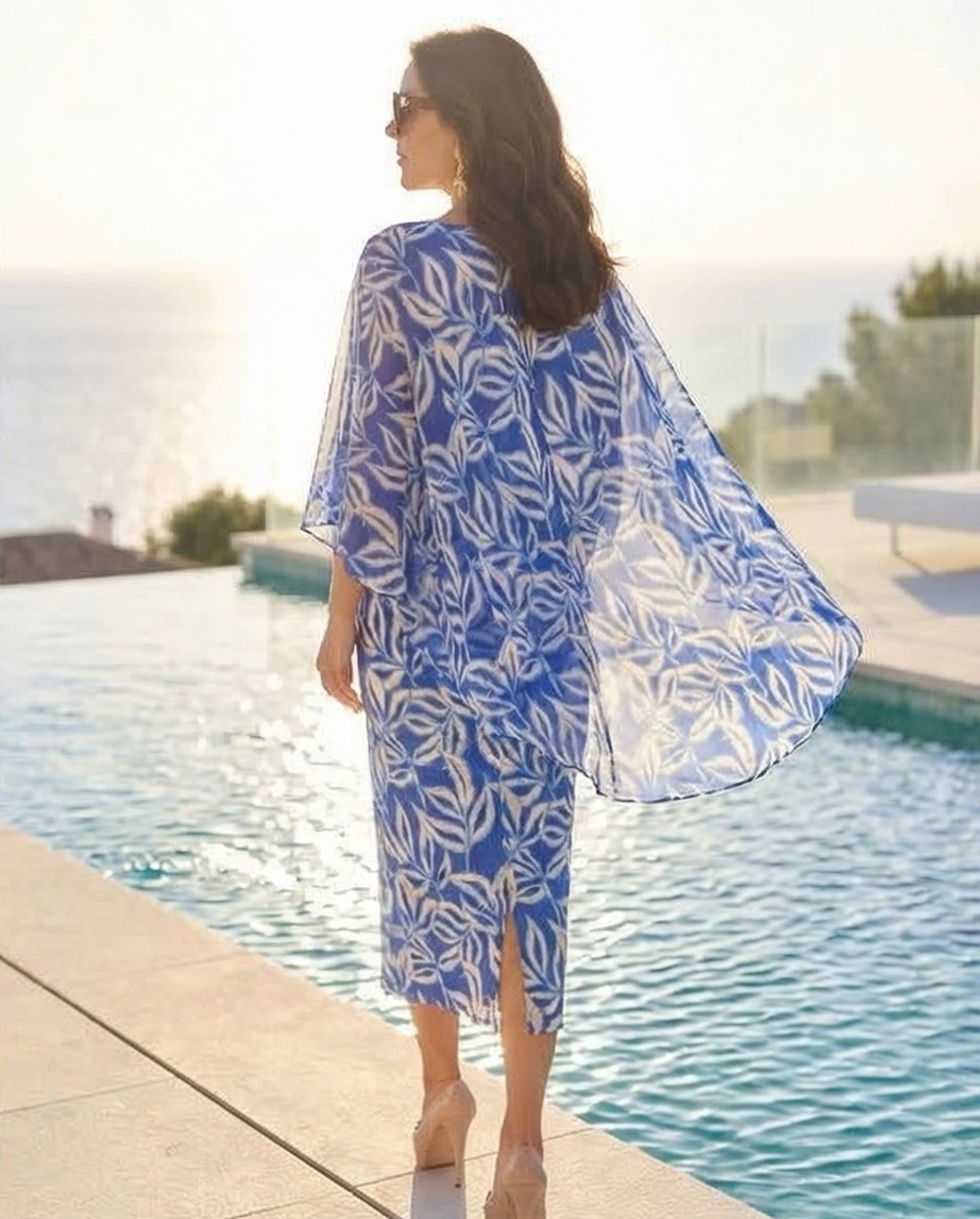 Mulher de vestido azul e branco com padrão floral na beira da piscina Vestido Atenas 149,40 € Desconto de %. Partilhar Tamanho M/L Comprar Contactar Vestido cai cai com opção de colocar alças, capa no mesmo estampado mas tecido mais fino. Cor: Branco e azulão